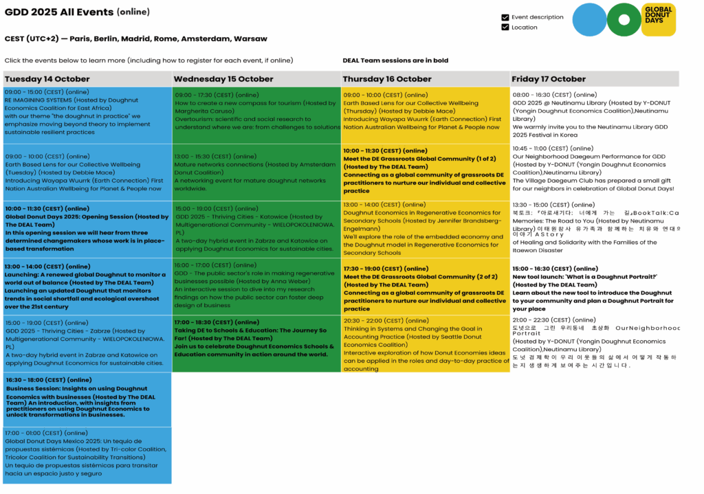 Die dritten Global Donut Days 2025 vom 14. Oktober bis 17. Oktober 2025 bieten wieder weltweit ein vielfältiges und spannendes Programm. An vielen Veranstaltungen könnt ihr online teilnehmen, um mehr über weltweite Donut-Projekte zu erfahren. Wir können euch sehr empfehlen in die Programmübersicht zu schauen oder auch auf der DEAL Seite unter den GDD-Events.